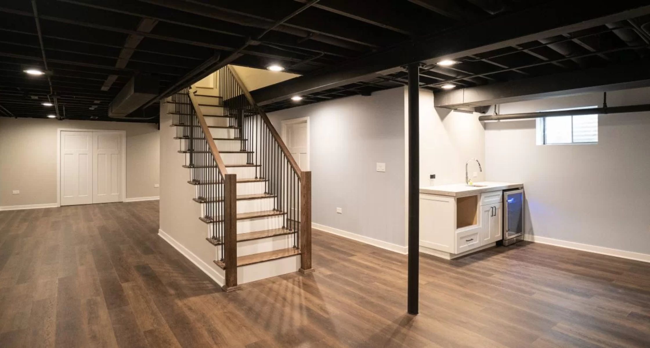 Put in all required inside doors then handle the exit window frame. Use baseboards crown molding or edge trims that fit how your house looks overall. Focusing on these small things shifts the basement from just functional to real everyday use.